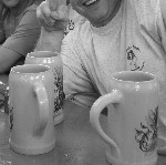 陶製のジョッキー。環境配慮以前に缶や使い捨てのカップでビールを飲むのはいかにも不味い、という感覚がある。 |