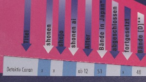 ■かつてコミックは子供向けのものという位置づけにありました。先ほどの話にもMANGAは親世代との区別のための道具になっているという分析をされていましたね。 『親がMANGAとはどういうものかを明確に把握していない。出版社へ親かの問い合わせが増えています』 『当社は年2回、各作品と対象年齢、少年向けか少女向けか、何巻まで出ているかといったことがひと目でわかる指標を書店に配布しています』 ■具体的にどうやって翻訳出版の作品をきめていますか 『ブックメッセへ行くと、フランスやアメリカの出版社は翻訳出版の提案を積極的にしてきます。ところが日本の出版社からはそういったアプローチがありません』 『したがって年2回、日本へ出向いて、本屋さんでマンガを山ほど買ってきます。私自身は日本語はできませんが、絵を見るとストーリーがある程度わかりますし、面白そうなものは2人学生、1人は日本人で、もう1人は日本語を勉強しているドイツ人なのですが、彼らに読んでもらってからきめています。』 ■作品の選択上、気をつけていることはありますか 『選択の条件としては2点。日本で売れているか、ということとテーマや内容ですね』 『当社はディズニーと深い関係があります。そのため「この出版社は子供が安心して読める」というイメージがある。ファン側から少年愛をテーマにした作品を出してほしいというリクエストもありますが、ポルノに近いセックスシーンがあるので、いくら要望があっても出版社としては出せない』 ■出版したものには微妙なものもあるのでは 『作者に了解の上、登場する女性の年齢を上げたり、絵そのものにも修正を加えることもあります。絵を修正する場合、まず、こちらで仮修正したものを日本へ送って了解をもらう。時には作者自身が手をいれてくれてくれることもあります』