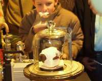科学は楽しい ◆『科学の夜長』には子供たちも連れていきました。物理の実験などはまだ難しいものもありましたが、中には目を輝かせて見ている実験もありました。『父親』としても、取材対象としても興味深い催しですが、それにしてもプログラムが多すぎるのが玉にキズ。 ◆現在スイス・ローザンヌにて研究生活を送っていらっしゃる曽我麻佐子さん。出張の途中でわざわざエアランゲンに立ち寄ってくださいました。お話をうかがっていると、研究生活の充実ぶりが伝わってきました。このとき拝見したデモンストレーションもなかなか楽しいものでした。 ◆ドイツは将来、専門家が不足が予想され、それに呼応するかたちで、科学振興にも力を注いでいます。子供にとって科学への興味は驚きや、楽しさというところから始まることも多いはず。『科学の夜長』はドイツの科学振興にもひとやく買っているかたちですね。(高松 平藏) |