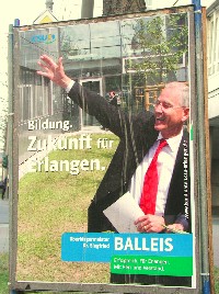 そして教育へ展開 ■今年は選挙の年になりますが、今後の方針は? 『健康に加え、子供と家族にやさしい街ということもすすめています。幼稚園・保育所を大きく拡大や、学校の休暇中に子供の面倒をみるプログラムの充実を図っています。2004年にはエアランゲンで「家族のための同盟」ができ、活発な活動をおこなっています』 『選挙後、もし当選すれば、この続きとして教育を軸に展開するつもりです。そもそも前市長の時代に、家庭環境の劣悪な子弟を対象にしたプログラムができ、そして継続しています。年間300万ユーロ投じています。当選後は子供だけでなく、あらゆる世代を対象に、教育を軸にした政策を展開するつもりです』 <取材メモ>時流を汲み取る政治家 バライス市長の一期目の目立った仕事は医療方面に特化した経済政策だ。これは経済局長時代の成果をうまく反映させることで、政治家としての特徴をアピールできた。 二期目をみると家族政策、そして教育に注力していこうとしている。いずれの政策も時流にのったものといえ、ある種のマーケティング能力に長けている政治家と映る。 それにしてもみるべきは地理感覚。ドイツ国内はもとより、EUの中でどういったポジションを獲得するか、ということを念頭におきながら市政を展開している。(了)