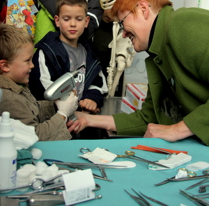 大学病院も門戸を開けた。医療器具を手にとる子供たち