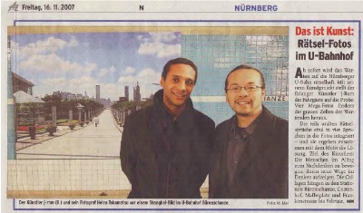 | 地元の新聞からも取材を受けた。左がジェロームさん。なお、背景の写真はユン・チャンさんが撮影した中国のもの(2007年11月16日付 Abendzeitung) |