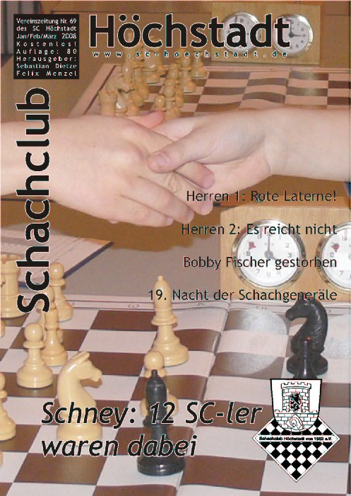Einige Berichte und Informationen aus der Ausgabe 69 hier Neu: Die gesamte Schachzeitung (in Farbe) im pdf-Format (5,4 MB) zum Herunterladen Falls jemand Interesse an der gesamten Ausgabe (Papier) hat, schickt bitte ein E-Mail an Reiner Schulz.